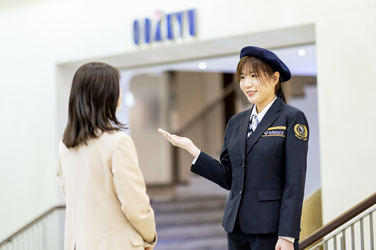 駅構内にて立哨、巡回警備を行うことで不審者・不審物の警戒をはじめ、お客さまが快適に駅をご利用できるように電車の乗り換え案内なども行っています。